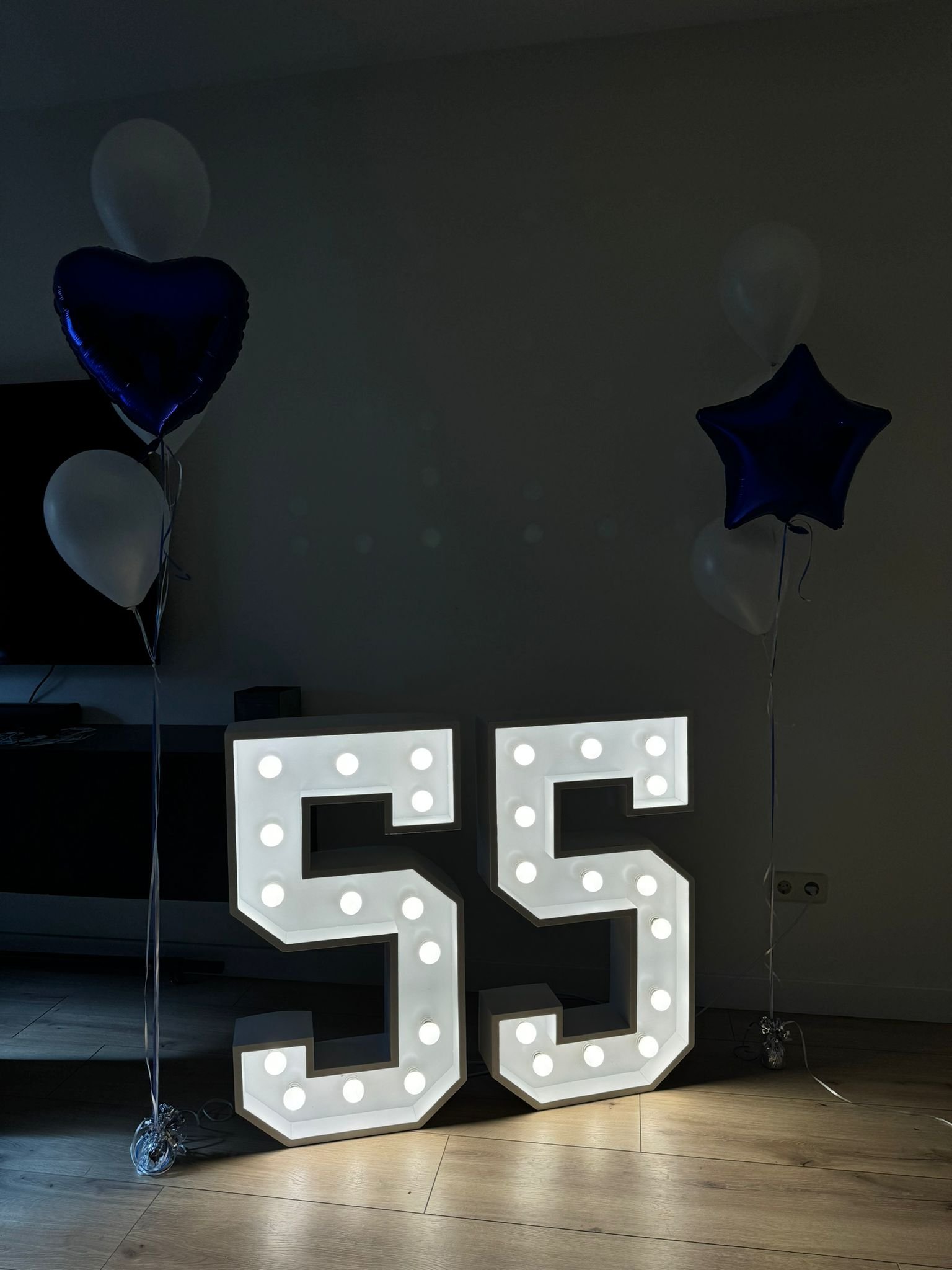 Met hun indrukwekkende hoogte van 100 cm en energiezuinige LED-verlichting zorgen ze voor een sfeervolle ambiance op elk evenement. Of het nu gaat om een verjaardag, jubileum of bedrijfsevenement, onze lichtcijfers maken het onvergetelijk. Onze decoratieve lichtcijfers zorgen voor sfeer, stijl en perfecte fotomomenten.