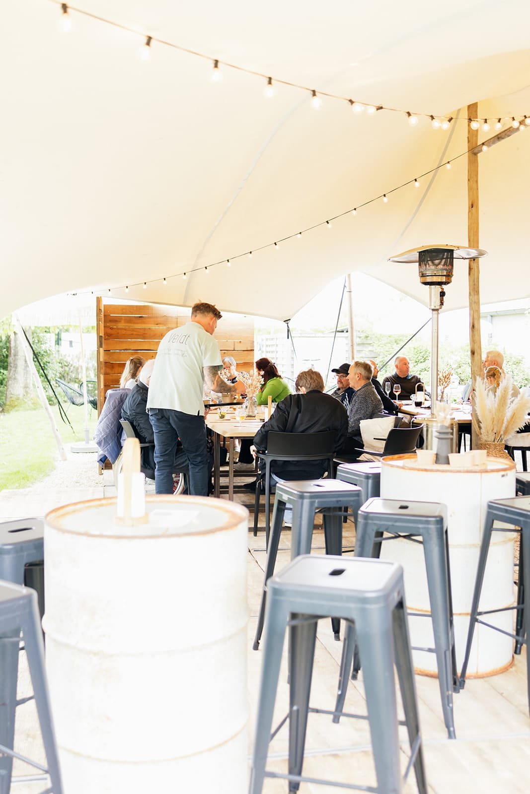 Wij zijn Petra en Yves, de bezielers achter ’t Veldt. Samen combineren we onze passies: Petra zorgt voor creativiteit, styling en beleving; Yves voor techniek, structuur en alles achter de schermen. Samen met ons team zetten we ons in om elke beleving onvergetelijk te maken. Wat ons drijft? Mensen samenbrengen, momenten creëren die raken en een plek bieden waar iedereen zichzelf kan zijn.