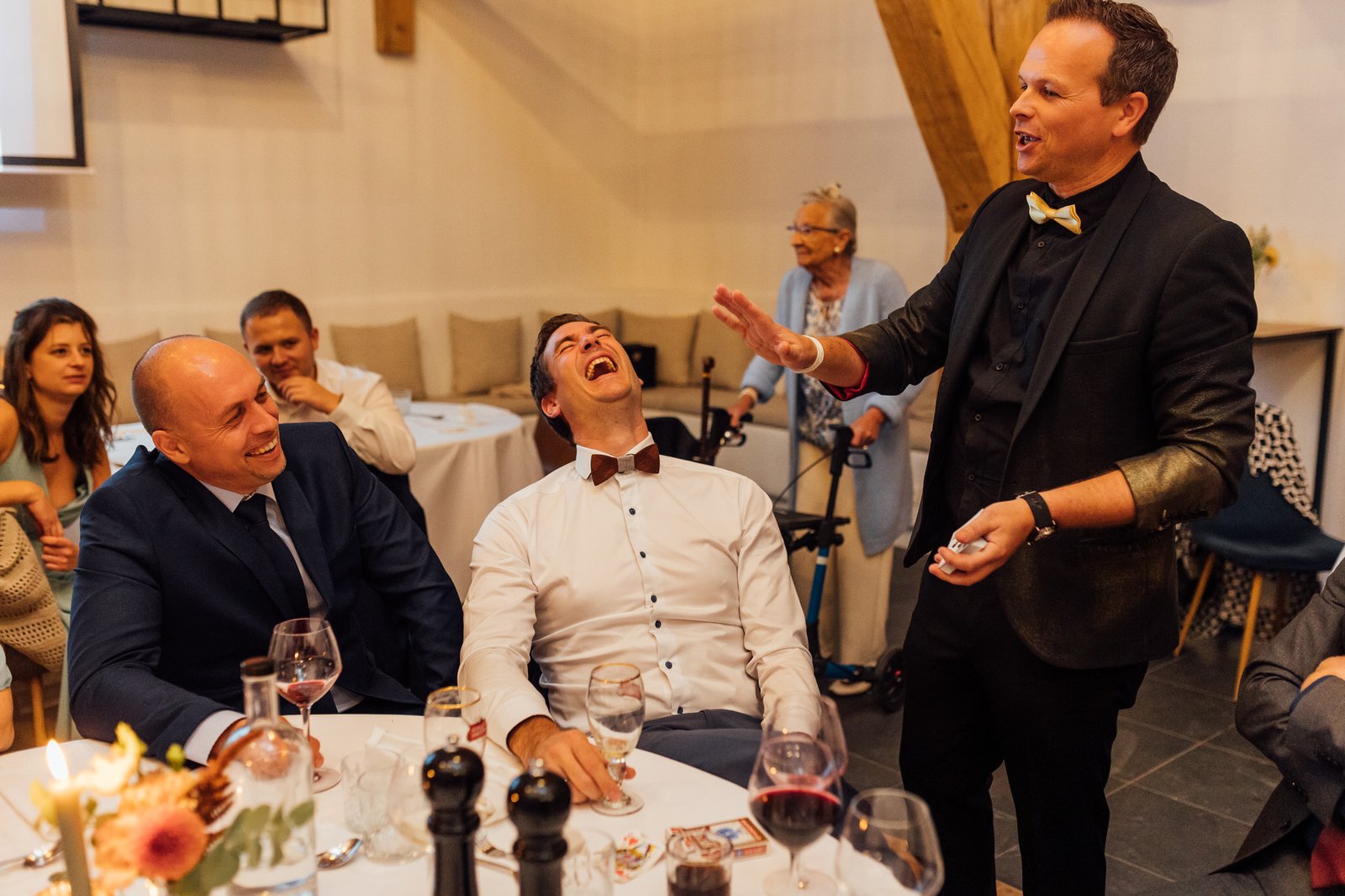 Tijdens het event werk ik stijlvol, flexibel en met veel aandacht voor interactie. Ik meng me vlot tussen de gasten of neem het podium wanneer het moment daar is, steeds met respect voor timing en organisatie.
