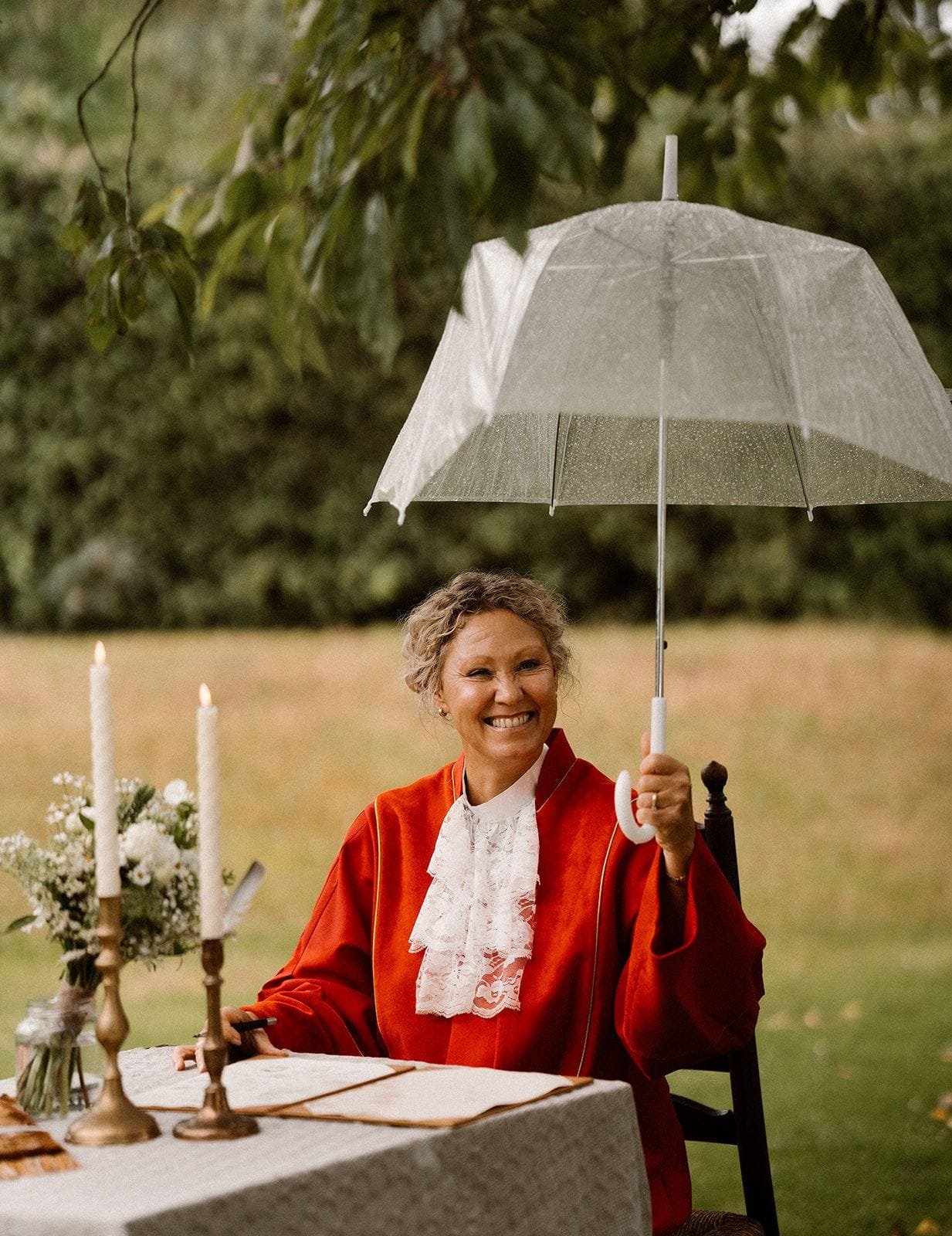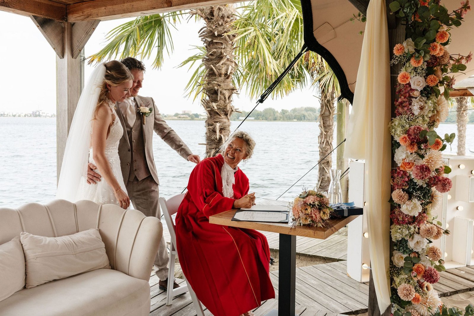 Nee hoor, ik draag wat jullie willen. Die rode toga staat voor mij voor passie en liefde (en rood is toevallig mijn lievelingskleur), maar als jullie mij liever zien in een mooie jurk of pak, dan trek ik dat graag aan op jullie dag. Is er een dresscode? Ik doe mee!